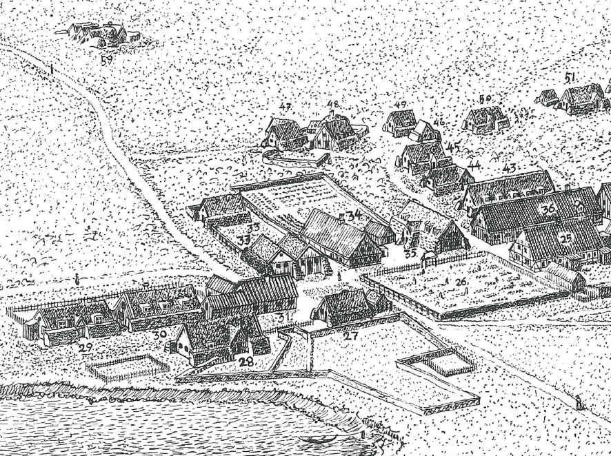 Teikning Aage Olsen Aanum af Kvosinni og syðri hluta Grjótaþorpsins byggð á kortum frá 1801 og öðrum samtímaheimildum. Svæðið er kennt við bæinn Grjóta, eina af hjáleigum Víkur (Reykjavík). Bæirnir í kringum Grjóta voru nefndir Grjótabæir, þótt þeir hafi allir haft eigin nöfn, reyndar stundum fleiri en eitt, enda oft kenndir við þann sem þar bjó. Bæirnir eru: