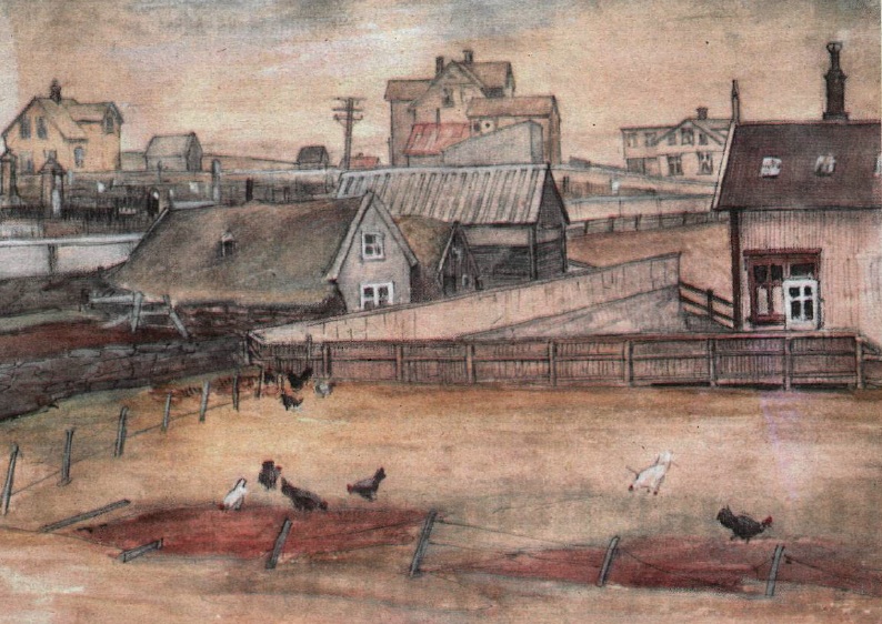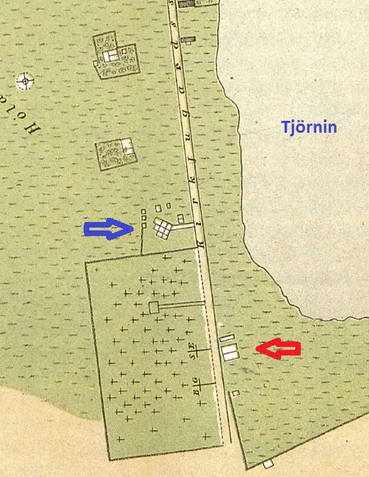 sinni Iítill torfbær með tveim burstum; og þilin tvö vissu suðrað tjörninni. Þessi litli