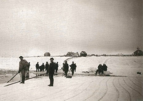 | Ístaka á tjörninni um 1900. Sjá má Melkot í bakgrunni. Hægra megin á myndinni er líkhúsið í kirkjugarðinum við Suðurgötu. Í dag er Melkot trúlega kunnast fyrir að vera fyrirmyndin að Brekkukoti í Brekkukotsannál Halldórs Laxness. |