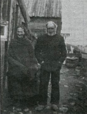 Hjónin Guðrún Klængsdóttir og Magnús Einarsson fyrir framan bæ sinn í Melkoti árið 1902. Guðrún var ömmusystir Halldórs Laxness (sem fæddist þetta sama ár) og þau ólu upp Sigríði, móður skáldsins. Guðjón Helgason, faðir Halldórs, var vinnumaður í Melkoti er þau Sigriður kynntust. |
