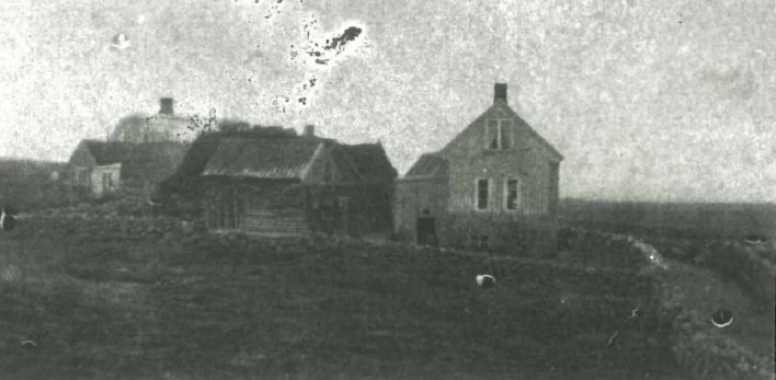 | Ljósmynd af Skálholtskoti frá 1890. Myndin er tekin frá Laufásvegi 5. Sjá má grjótgarða sem afmarka Laufásveg. | Ljósmynd af Laufásvegi árið 1907. Skálholtskot er fyrir miðju í bakgrunni. |